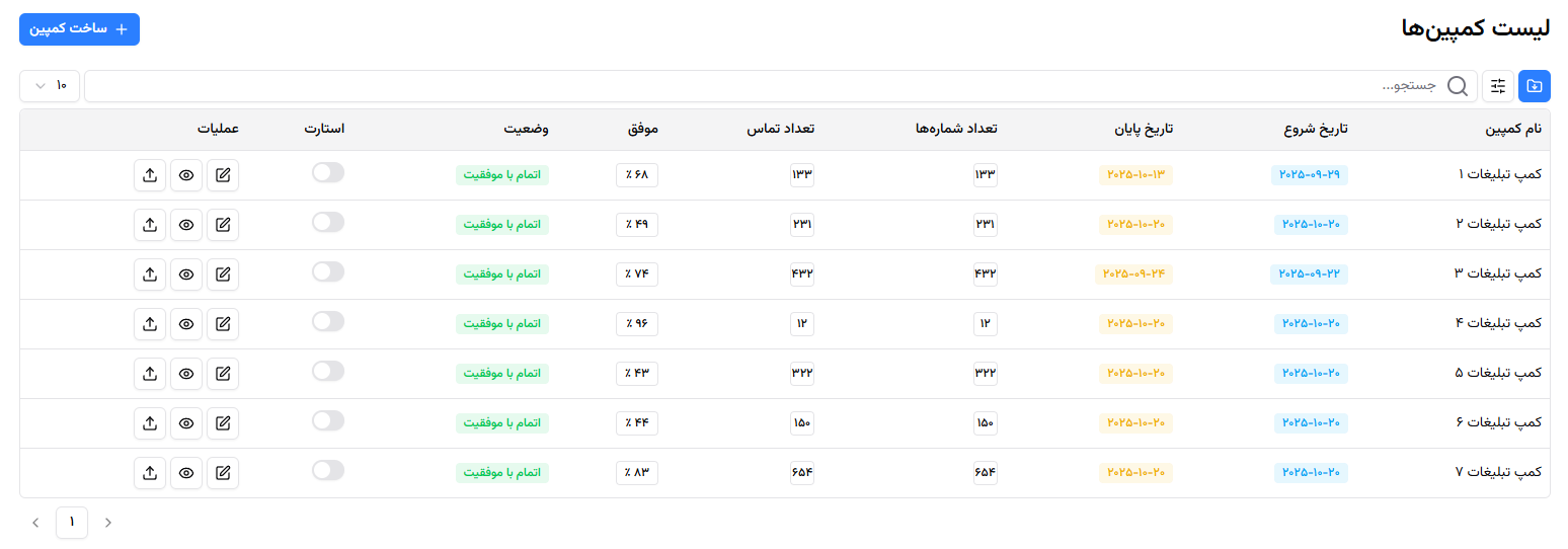 مدیریت کمپینها و آمار زنده